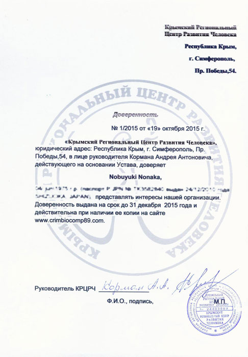 代表者:Nobuyuki NONAKA / Tetiana V. Nonaka